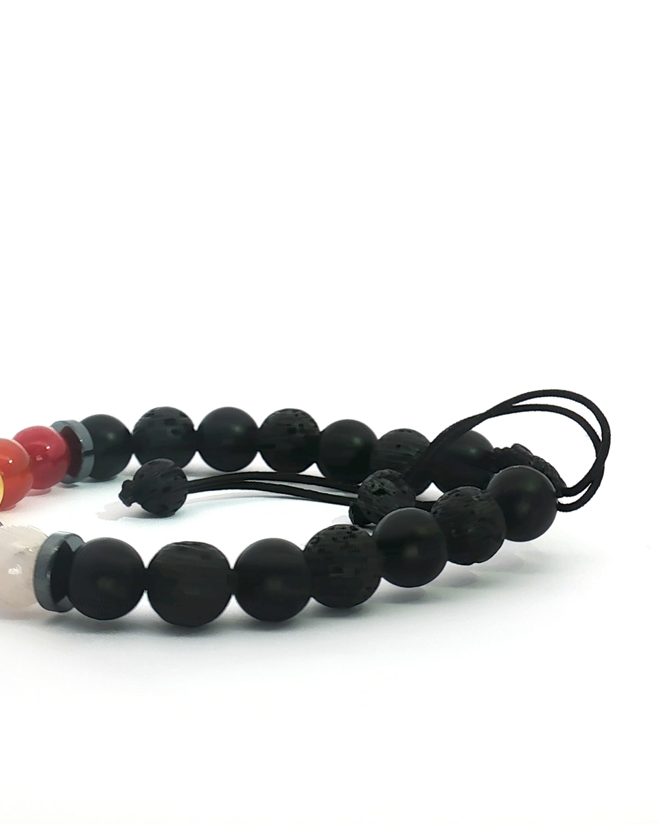 “Experience balance and harmony with this meticulously crafted beaded bracelet. A vibrant array of gemstone beads is complemented by textured non metal accents. Featuring a secure, adjustable closure, this beaded bracelet combines holistic well-being with sophisticated styling.”