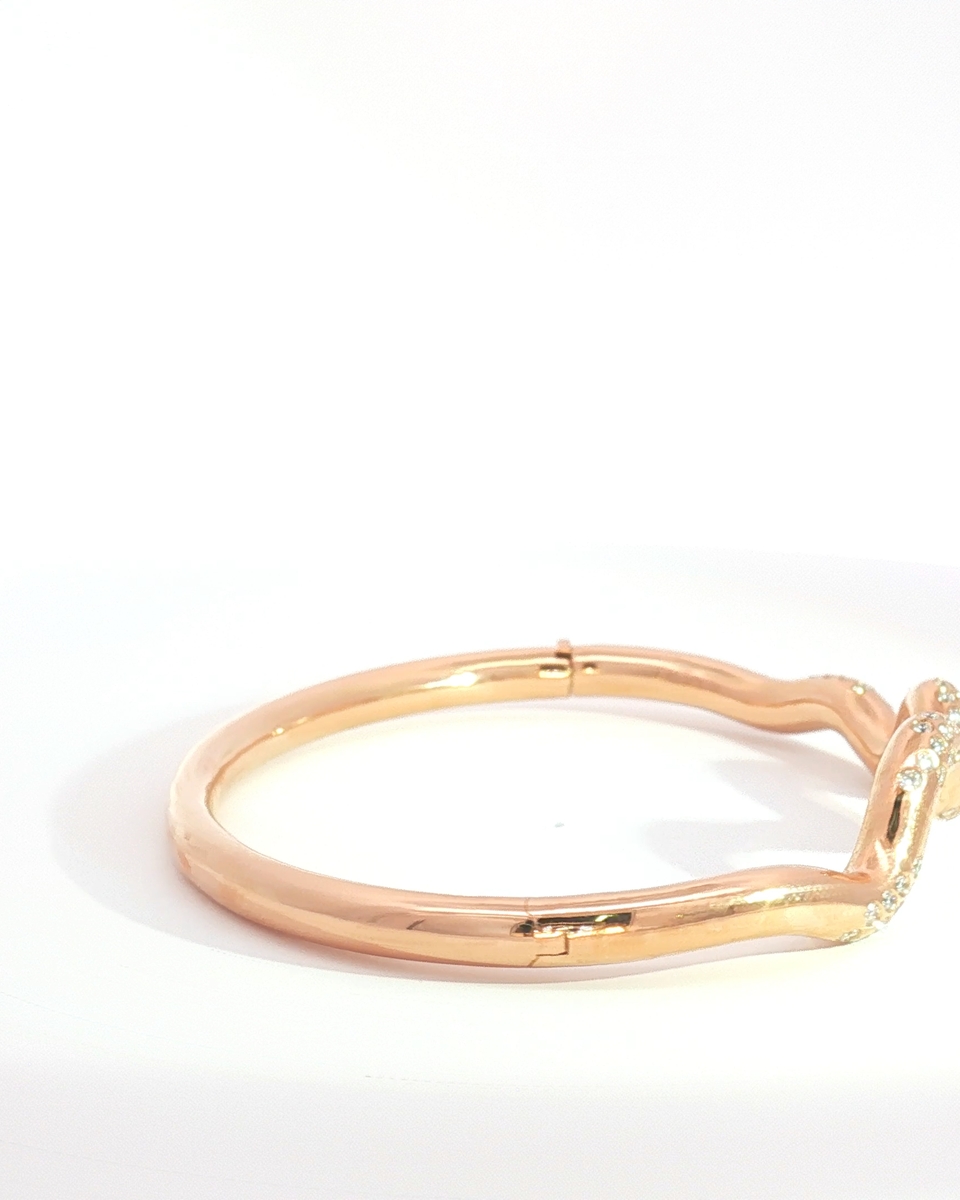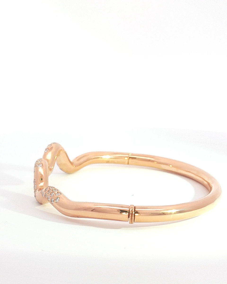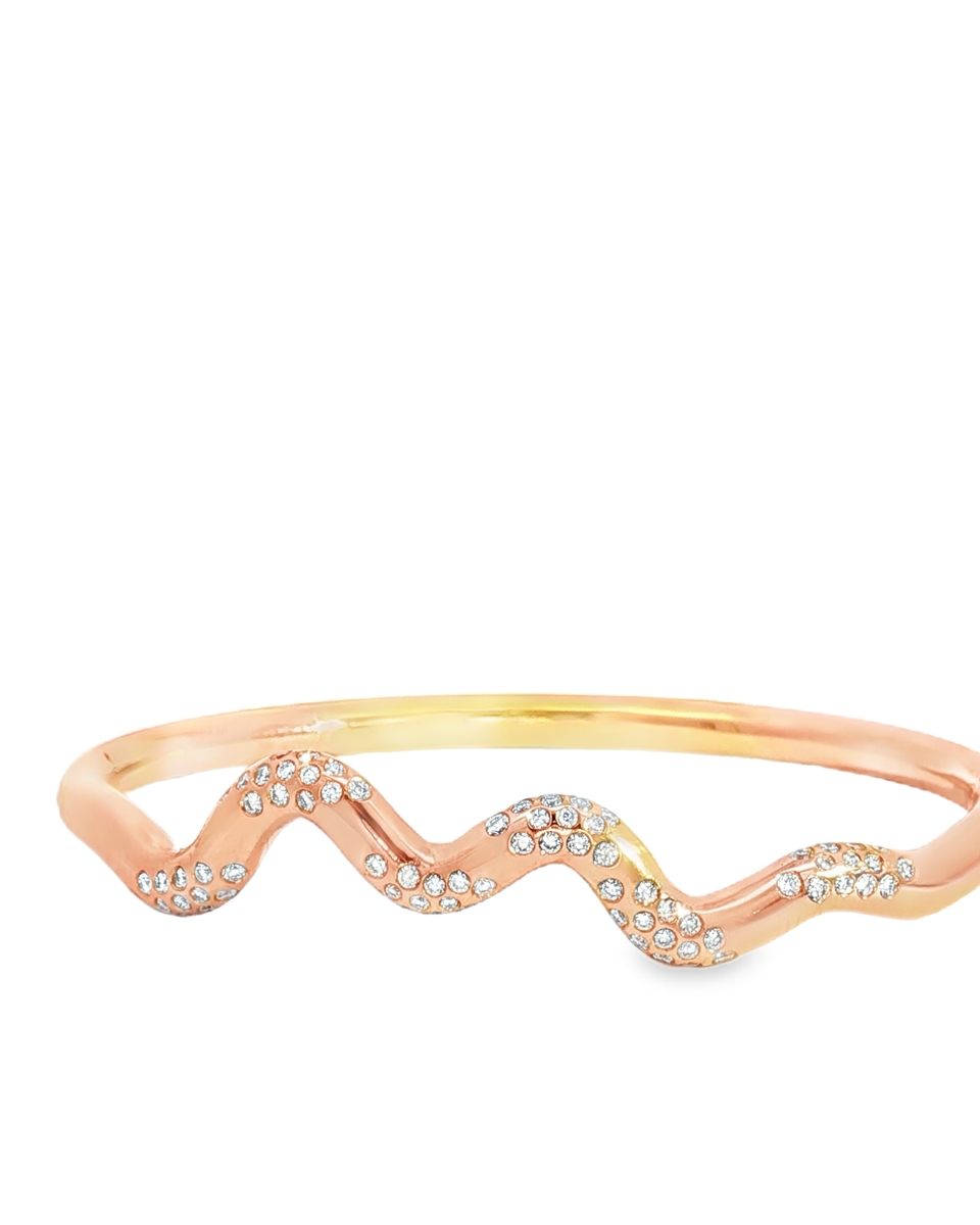 Elevate Your Style With This Radiant Rose Gold Bangle. A Continuous, Undulating Design Creates A Wave Effect, Embellished With Round Cut Diamonds In A Brilliant Style. This Chic Bracelet Is Perfect For Adding A Touch Of Sophisticated Sparkle To Any Ensemble, Day Or Night.