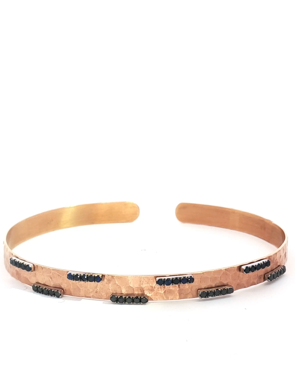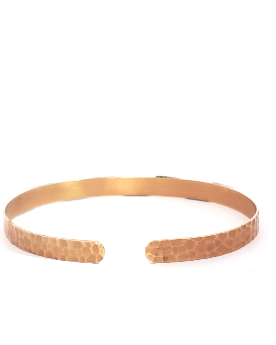 “Elevate your wrist with this captivating bangle, crafted from a unique base material and finished with a radiant yellow gold hue. Adorned with round brilliant cut diamonds, this open-ended design is a statement of modern elegance, perfect for adding a touch of refined sparkle to any ensemble.”