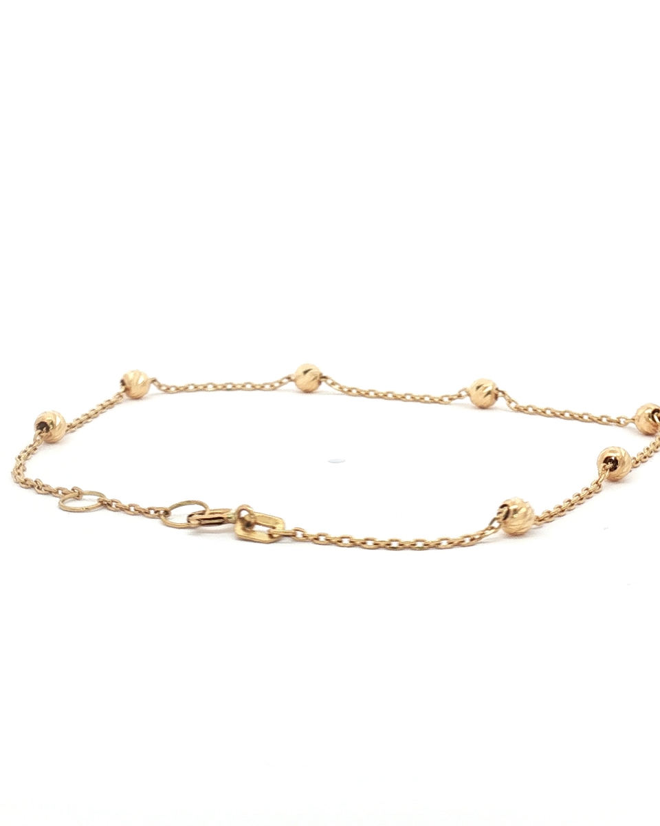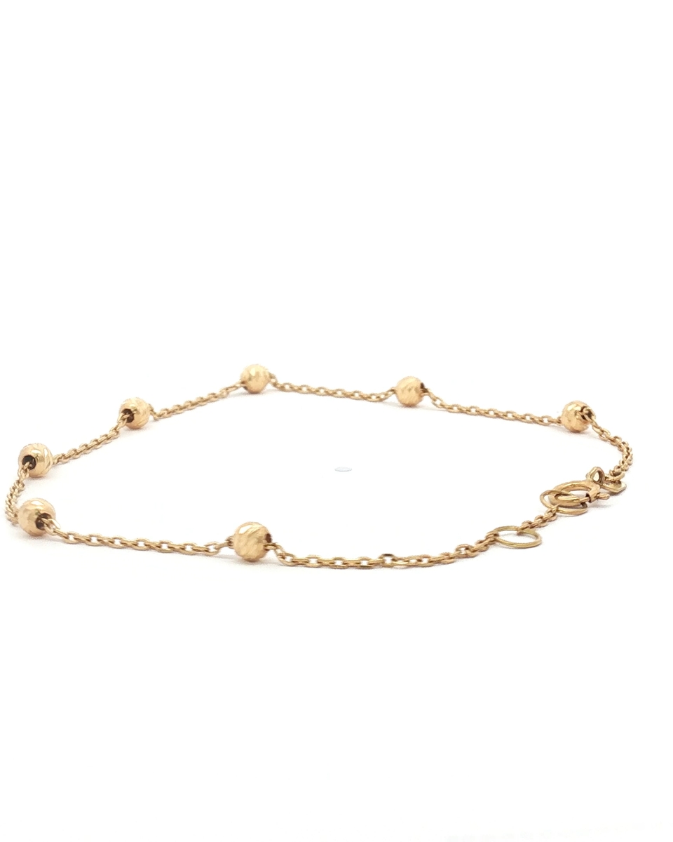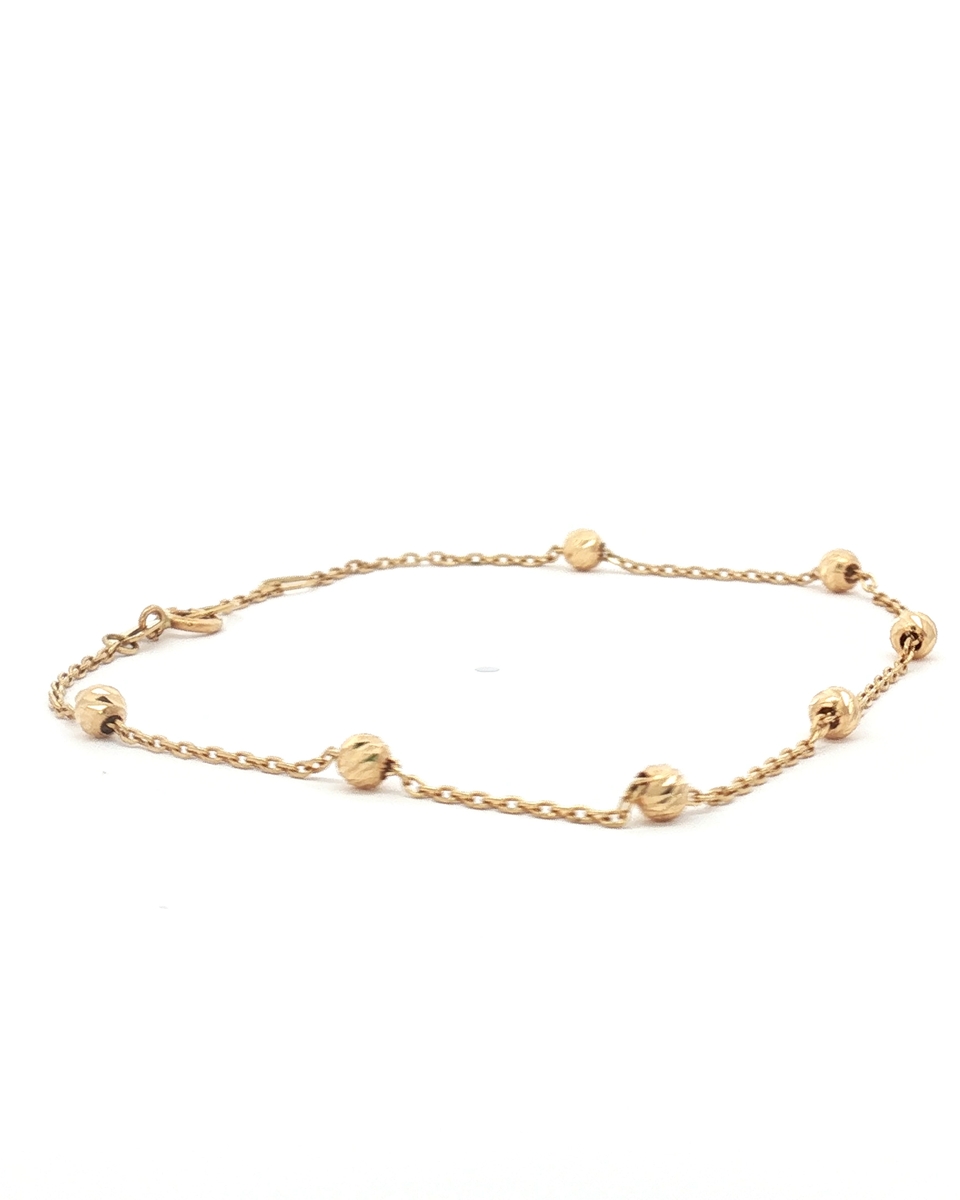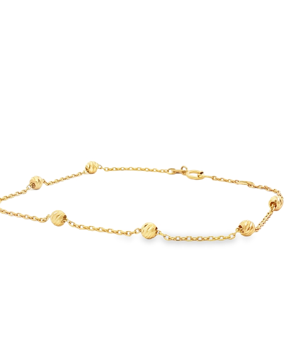 Indulge In Understated Elegance With This Chic Yellow Gold Chain Bracelet. Featuring A Delicate Chain Interspersed With Textured Gold Beads, This Bracelet Exudes Subtle Charm And Sophistication. Its Timeless Design And Lustrous Finish Make It A Versatile Accessory, Perfect For Adding A Touch Of Refined Style To Any Ensemble.