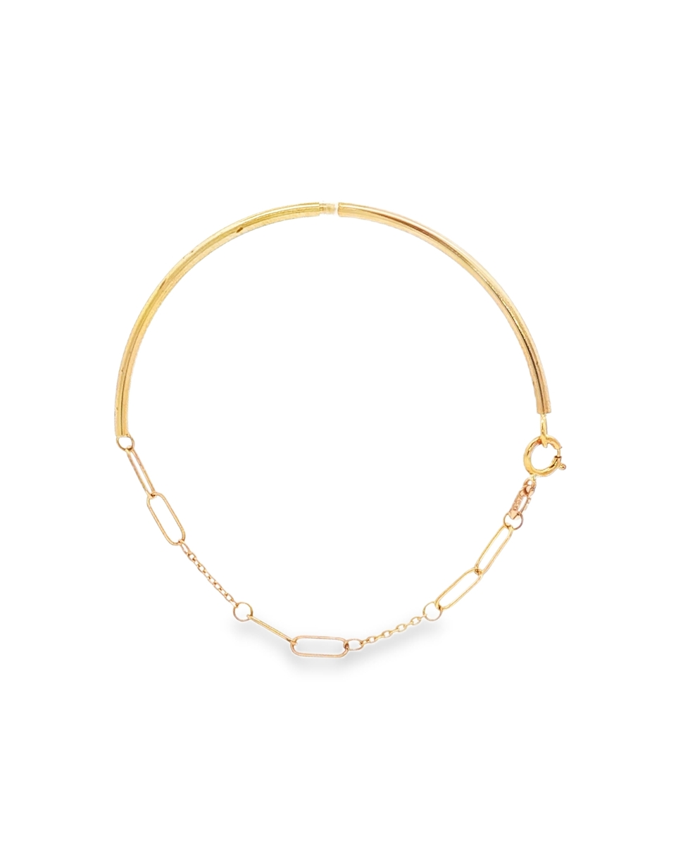 Elevate Your Wrist With This Sophisticated Yellow Gold Chain Bracelet. The Design Elegantly Combines A Polished Gold Curved Element With A Delicate Chain, Creating A Contemporary And Chic Aesthetic. Its Refined Construction And Warm Golden Hue Make It A Versatile Piece For Both Everyday Wear And Special Occasions.