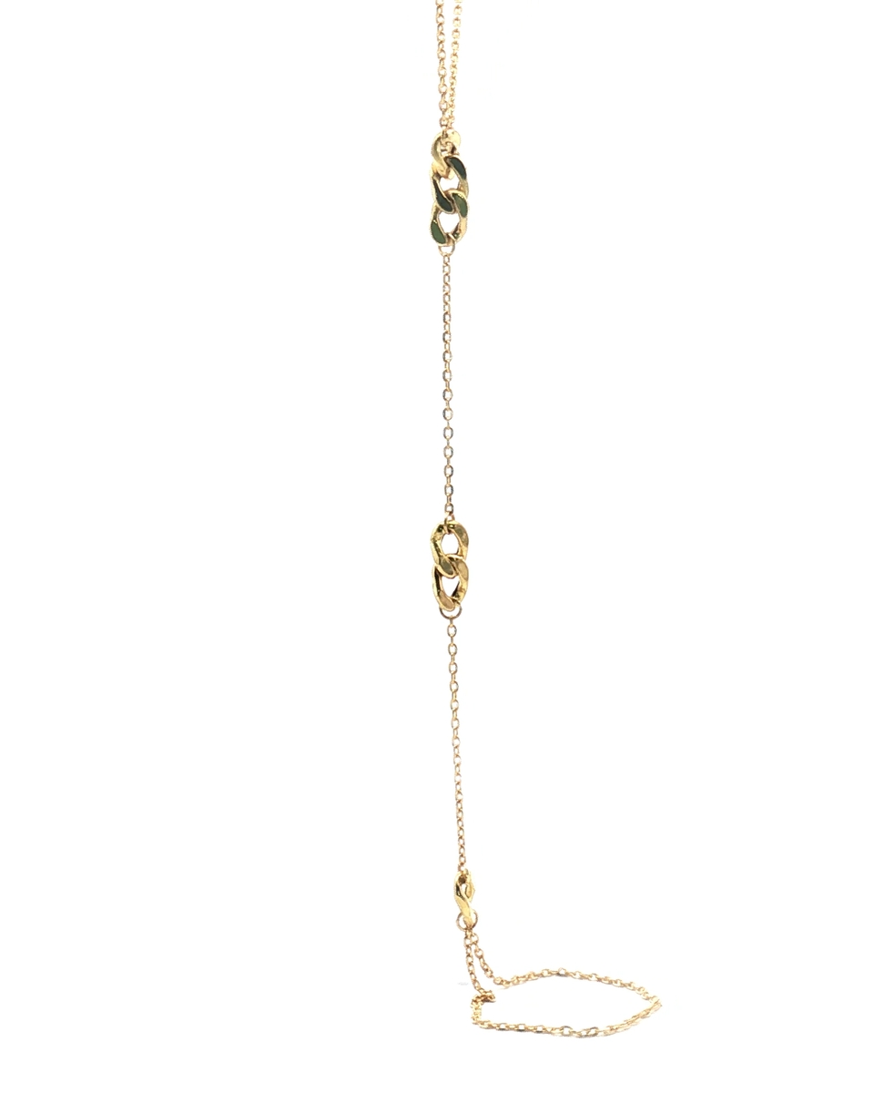 This Alluring Yellow Gold Chain Hand Chain Showcases A Delicate, Vertically Suspended Design. Expertly Crafted In A Fine Gold, This Chain Cascades With Subtle Elegance, Ideal For Adding A Touch Of Sophistication To Any Ensemble. Its Sleek Composition And Minimalist Charm Create A Versatile Piece, Perfect For Both Everyday Wear And Special Occasions.
