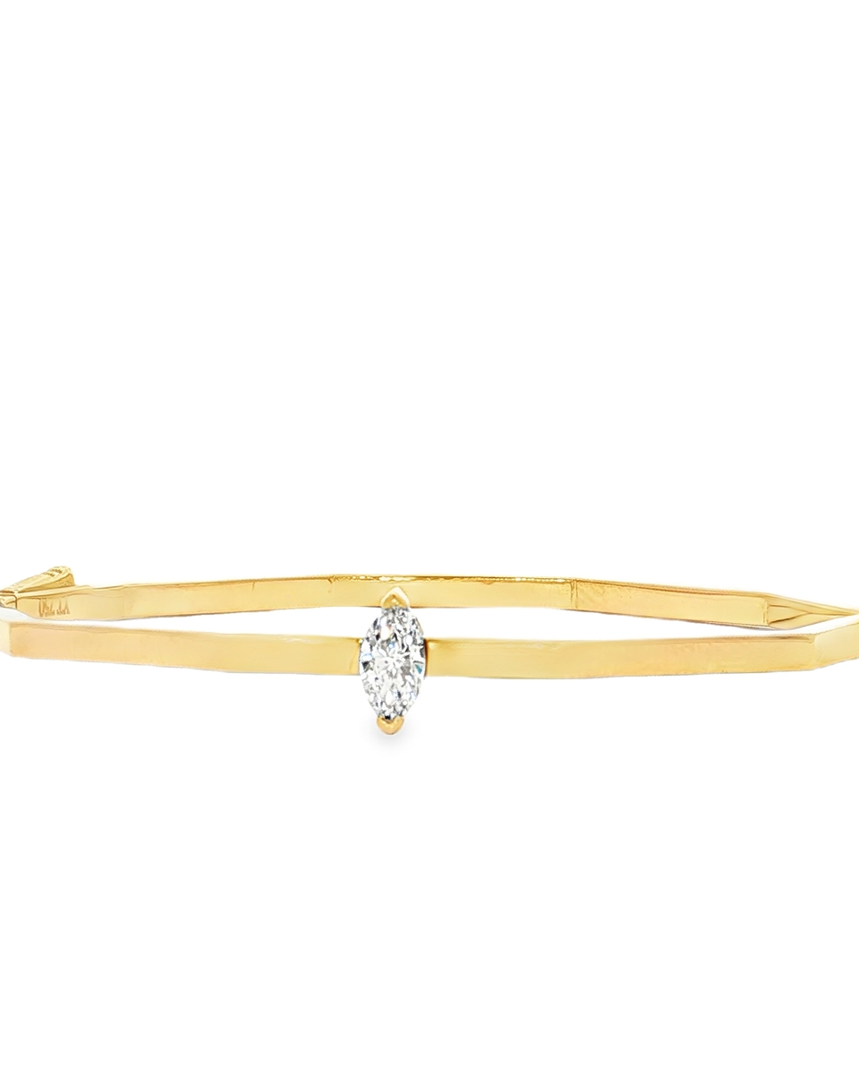 Elevate Your Style With This Chic Bangle Bracelet, Expertly Crafted In Radiant Yellow Gold. A Marquise-Cut Diamond Adds A Touch Of Brilliance, Its Elongated Shape And Brilliant Cutting Style Creating A Dazzling Play Of Light. Perfect For Adding A Touch Of Refined Elegance To Any Ensemble, This Bangle Is A Timeless Treasure.