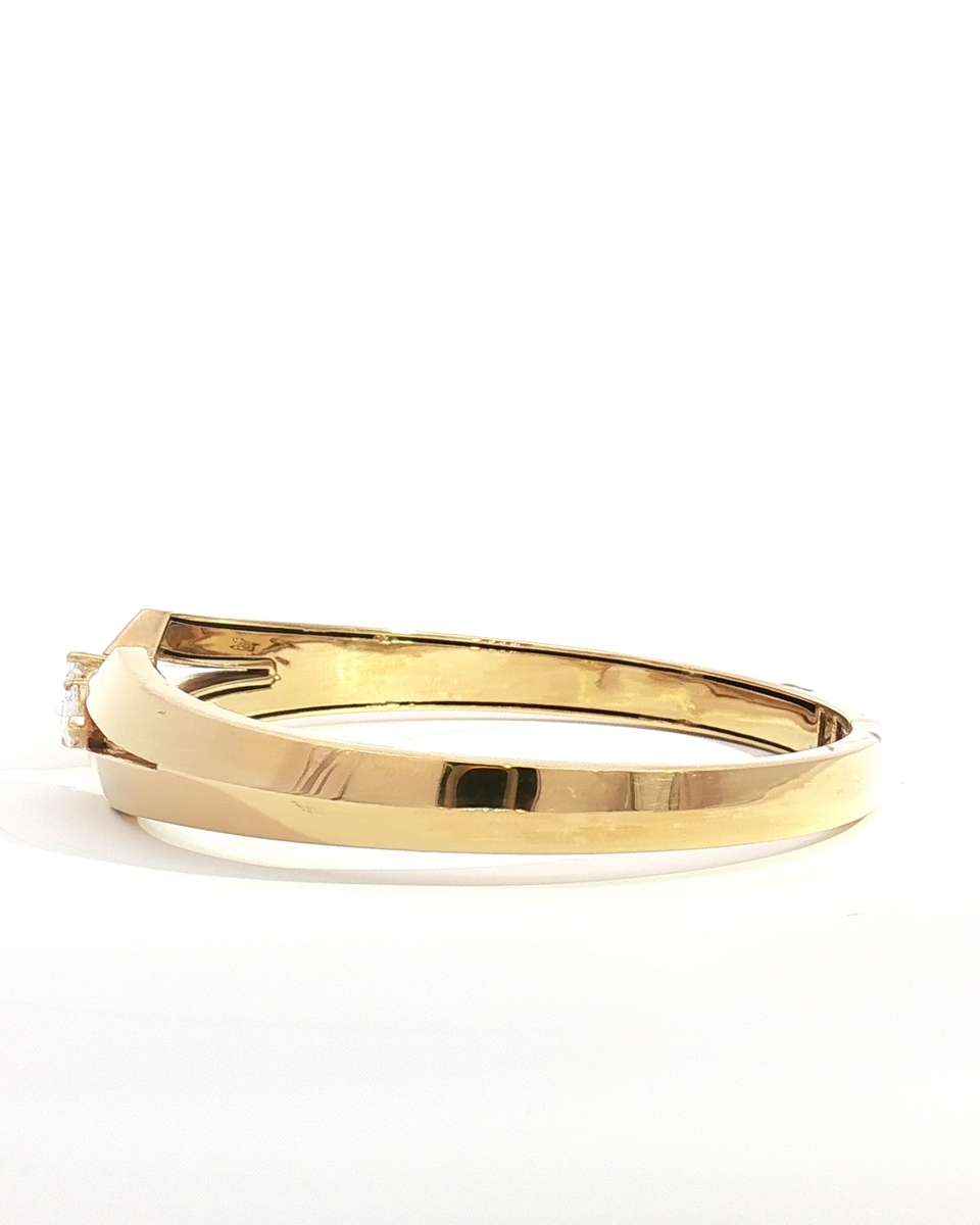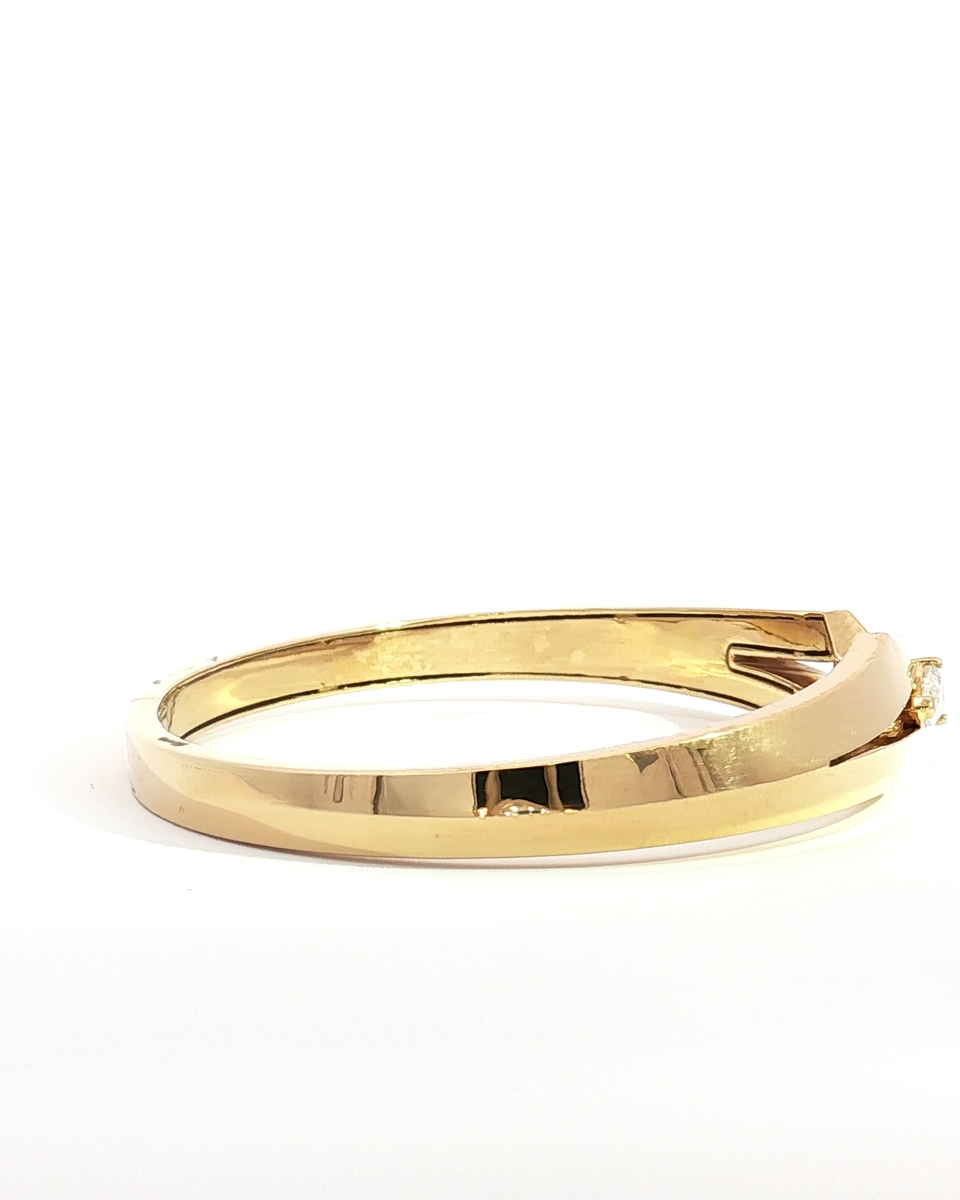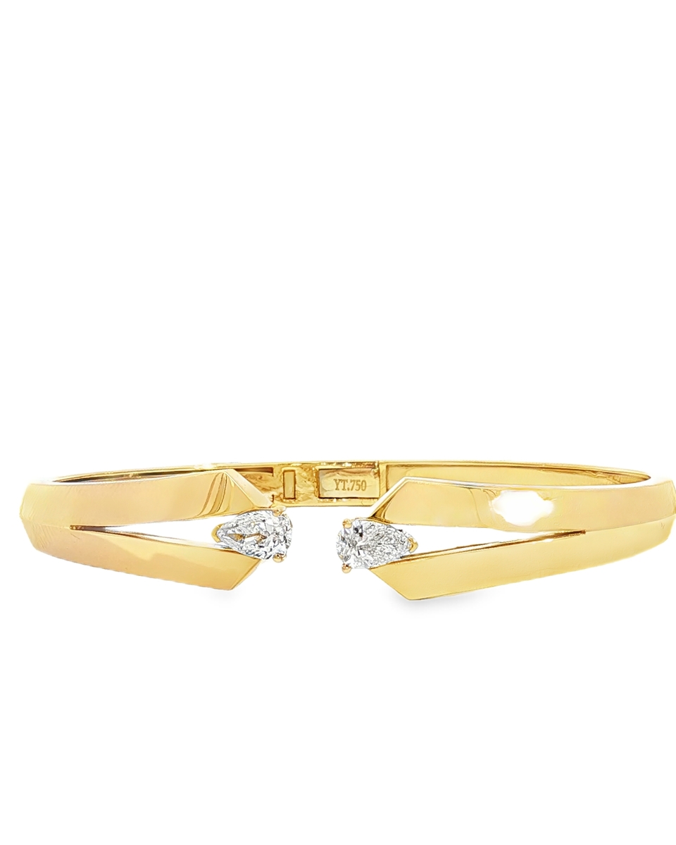 Elevate Your Style With This Exquisite Yellow Gold Bangle. This Meticulously Crafted Piece Features Two Pear-Shaped Diamonds, Each Exhibiting A Brilliant Cut. The Warm Tones Of The Gold Complement The Diamonds, Creating A Luxurious Accessory That Exudes Sophistication And Elegance.