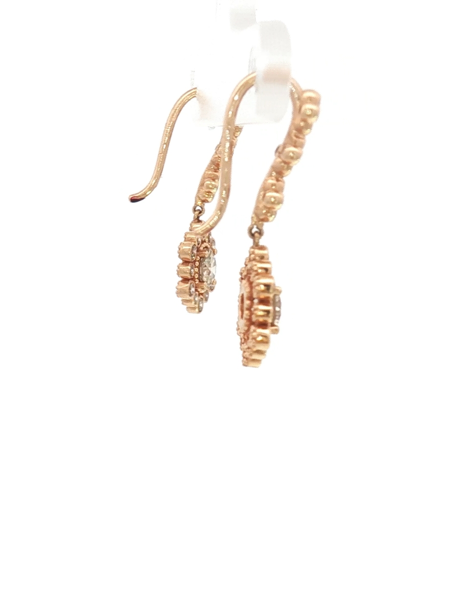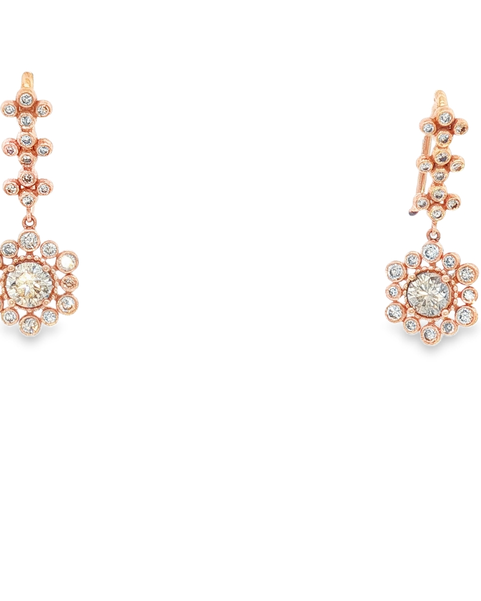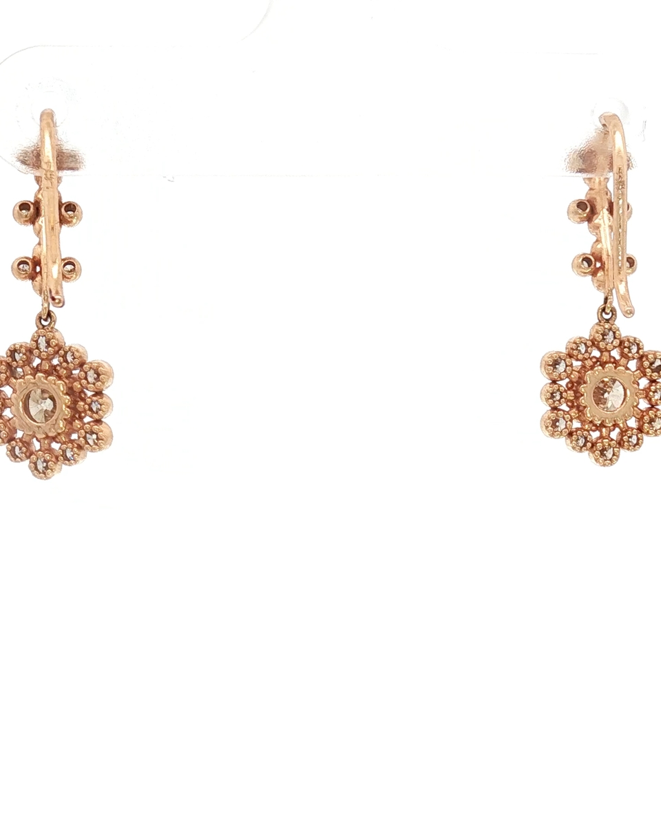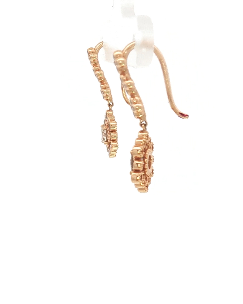 Elevate Your Style With These Exquisite Dangle Earrings, Crafted In Radiant Rose Gold. The Design Features A Cluster Of Brilliant-Cut Diamonds Set In A Floral Motif, Adding A Touch Of Timeless Elegance To Any Ensemble. Perfect For Special Occasions Or Adding A Luxurious Touch To Everyday Wear.