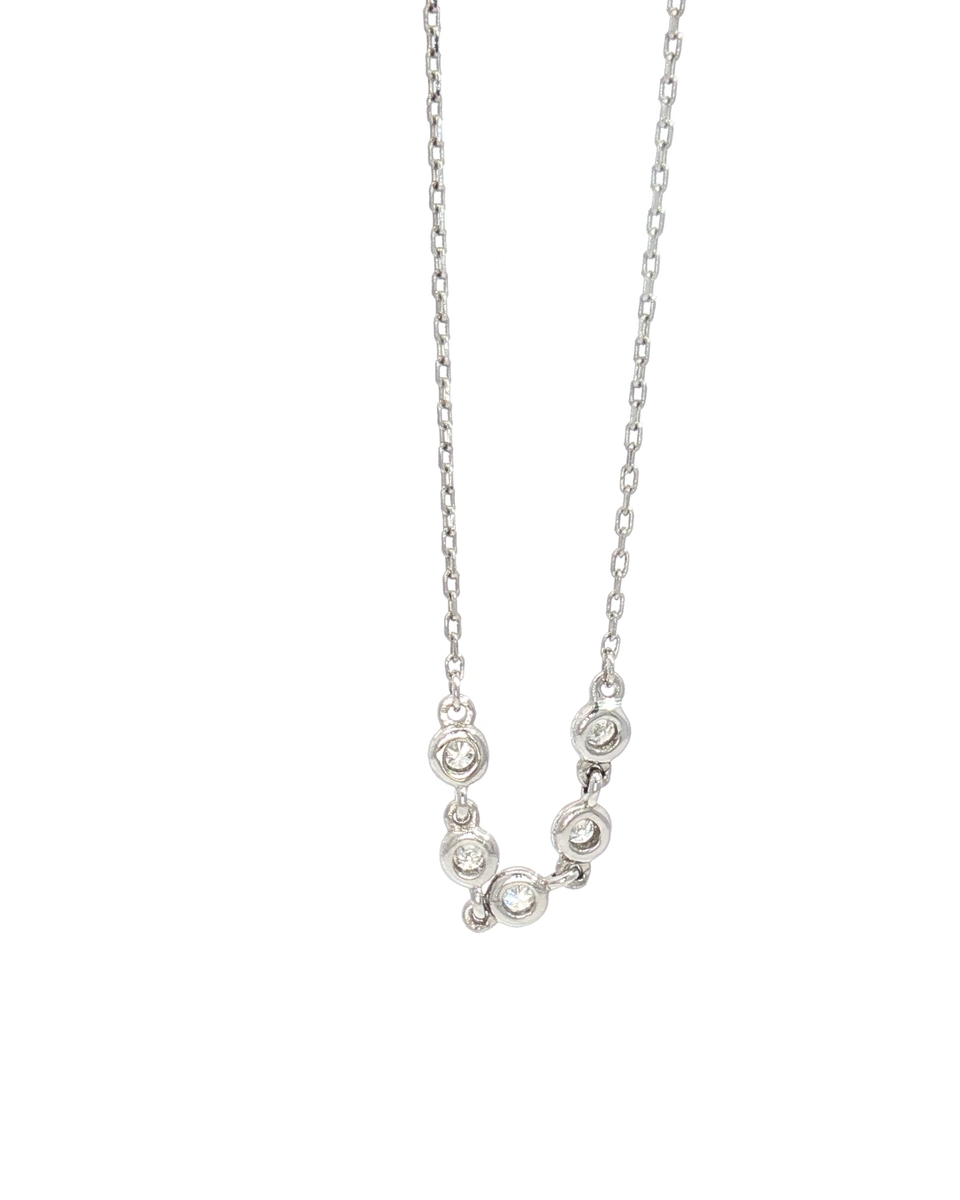 “This exquisite diamond bracelet features round brilliant cut diamonds set in a delicate white gold finish on a fine silver chain. The elegant arrangement of diamonds creates a captivating display of light and brilliance. This diamond bracelet offers a timeless and sophisticated aesthetic, perfect for adding a touch of understated glamour to any occasion.”