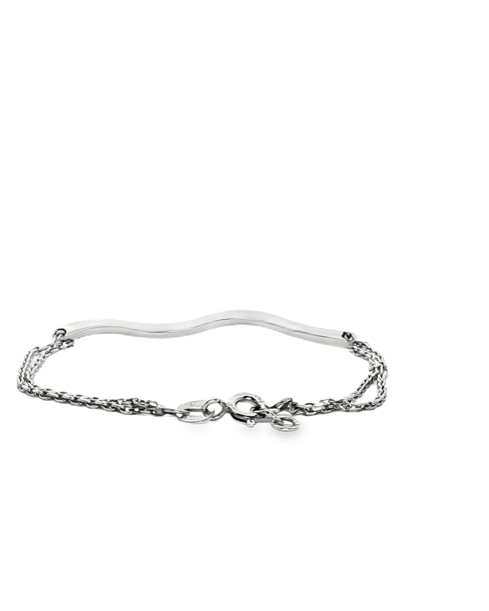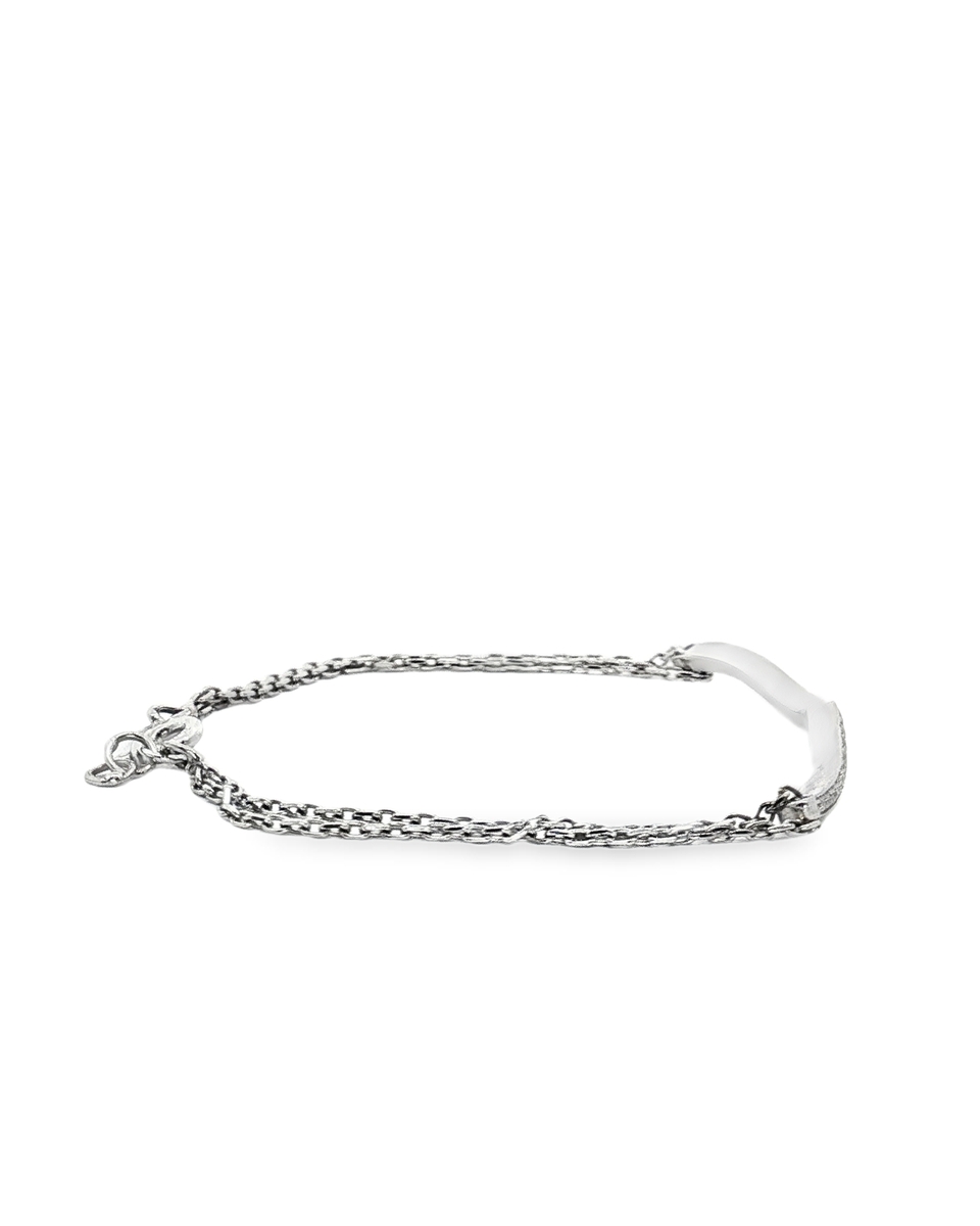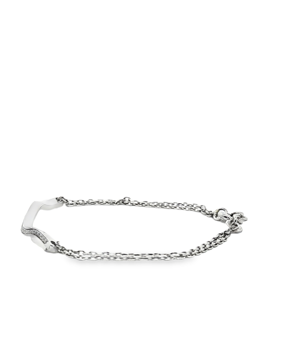 Elegant chain bracelet crafted in lustrous white gold. This exquisite piece features a sinuous band set with dazzling round cut diamonds showcasing brilliant sparkle. A sophisticated accessory that adds a touch of luxury to any ensemble.