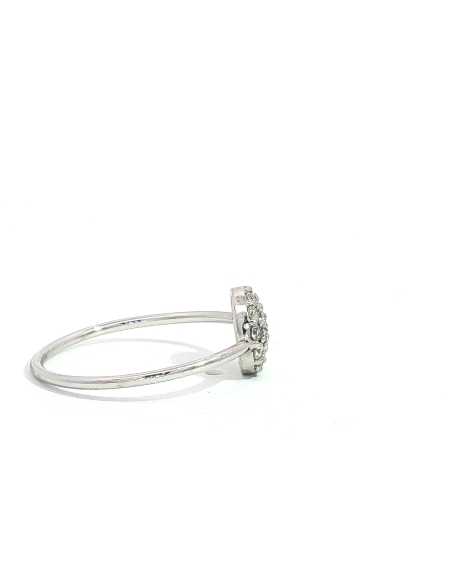 “Elevate your elegance with this exquisite multistone ring. Crafted from white gold, this ring features a central cluster of round cut diamonds set in a harmonious arrangement, creating a stunning visual display of brilliance and fire.”