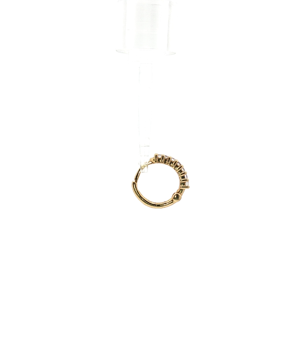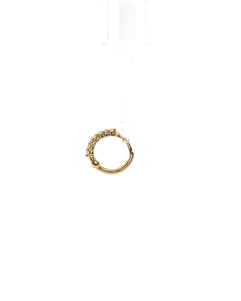Elevate Your Everyday Style With This Exquisite Yellow Gold Hoop Earring. The Earring Is Meticulously Crafted From Radiant Yellow Gold And Features A Row Of Dazzling, Round Cut Diamonds. The Brilliant Diamonds Add A Touch Of Subtle Sparkle, Making This Earrings Perfect For Both Casual And Elegant Occasions.