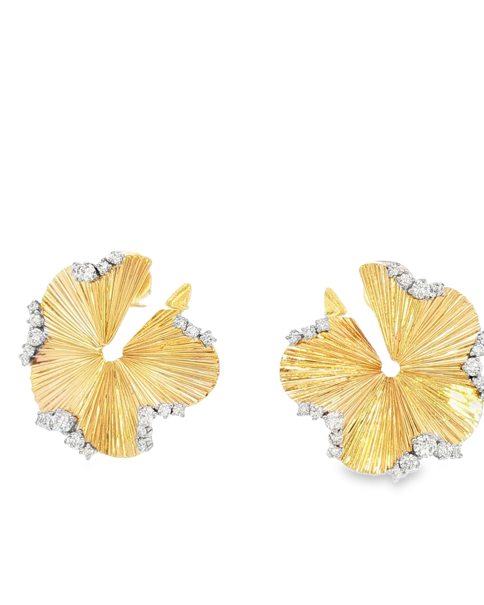 Elevate Your Style With These Exquisite Stud Earrings, Crafted From Radiant Yellow Gold. The Earrings Showcase A Unique, Textured Design, Adorned With Shimmering, Round-Cut Colorless Diamonds Set In A Brilliant Style. These Statement Pieces Are Perfect For Adding A Touch Of Luxury And Sophistication To Any Ensemble.