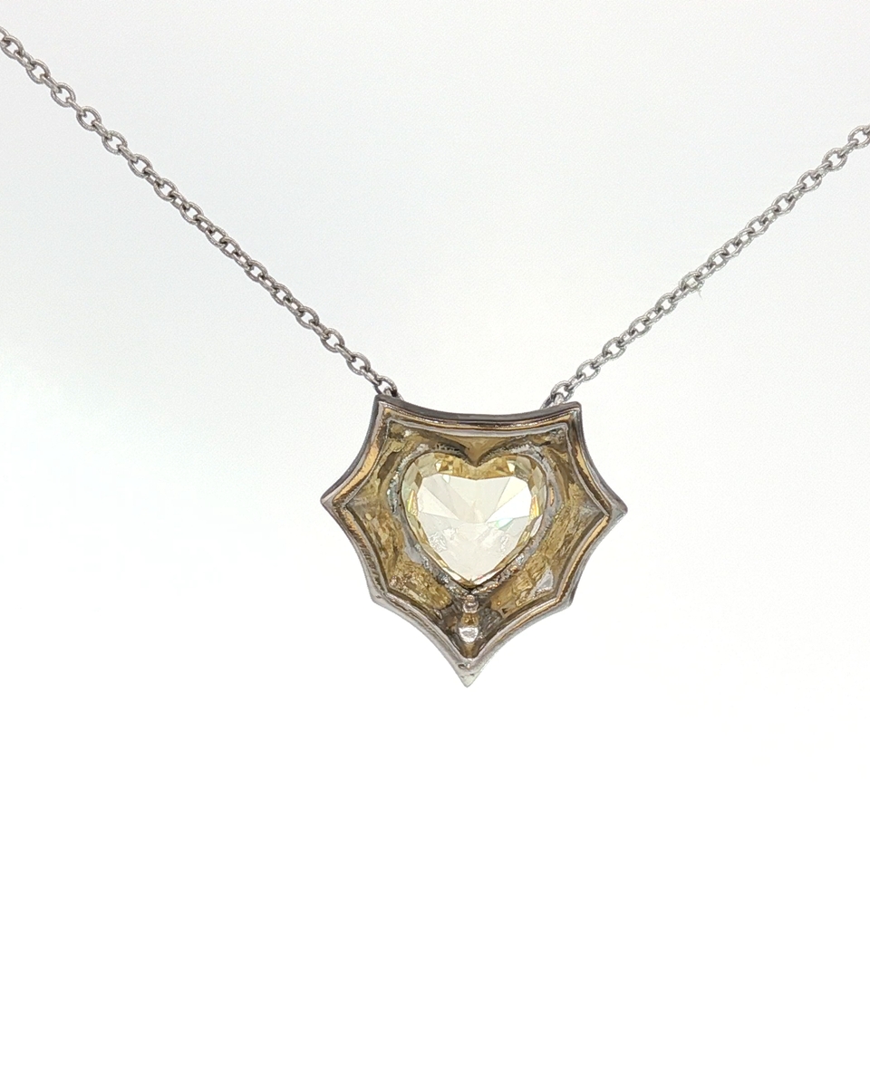 Exquisite Charm Necklace Featuring A Heart-Shaped Citrine Set In White Gold. This Citrine Pendant Is Suspended From A Delicate Gold Chain, Creating An Elegant And Unique Piece. Perfect For Adding A Touch Of Romance And Sophistication To Any Ensemble.