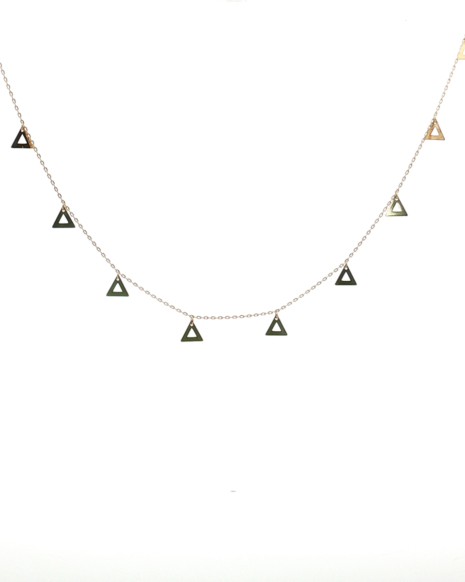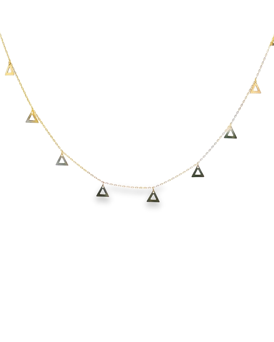 Elevate Your Style With This Charming Yellow Gold Chain Necklace. Delicately Crafted, This Necklace Features A Series Of Geometric Triangle Pendants That Dangle Gracefully. A Modern And Minimalist Accessory, This Necklace Adds A Touch Of Subtle Sophistication To Any Ensemble.