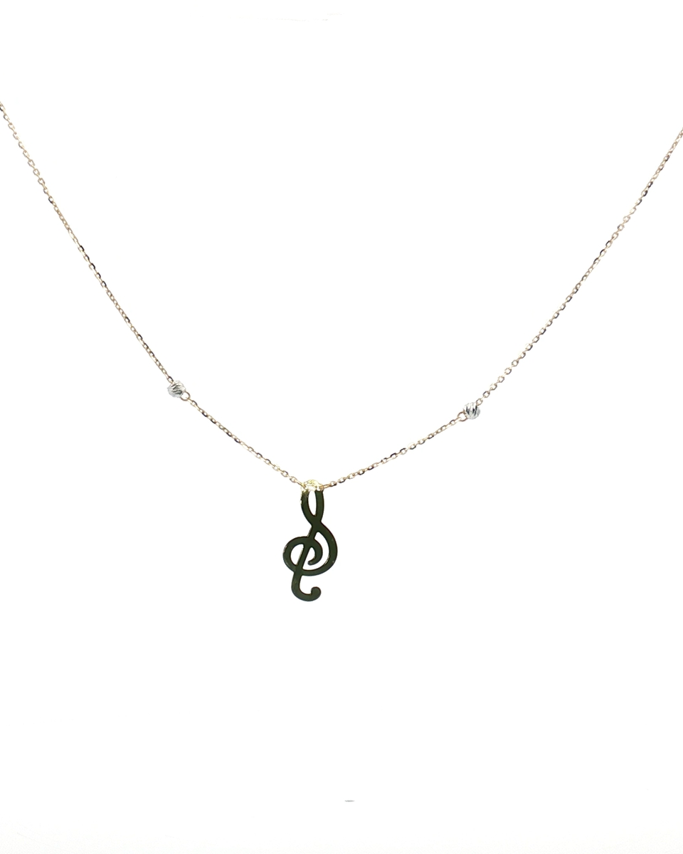 Adorn Yourself With This Delicate Yellow Gold Charm Necklace. This Fine Piece Features A Slender Chain, Gracefully Suspending A Distinctive Treble Clef Charm. The Polished Gold Exudes A Subtle Warmth And Sophistication, Perfect For Adding A Touch Of Musical Elegance To Any Ensemble. A Symbol Of Artistry And Passion, This Necklace Is Ideal For Music Enthusiasts And Those With A Refined Sense Of Style.