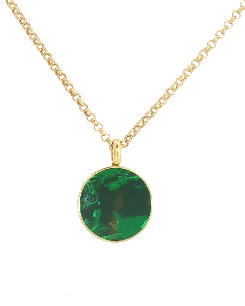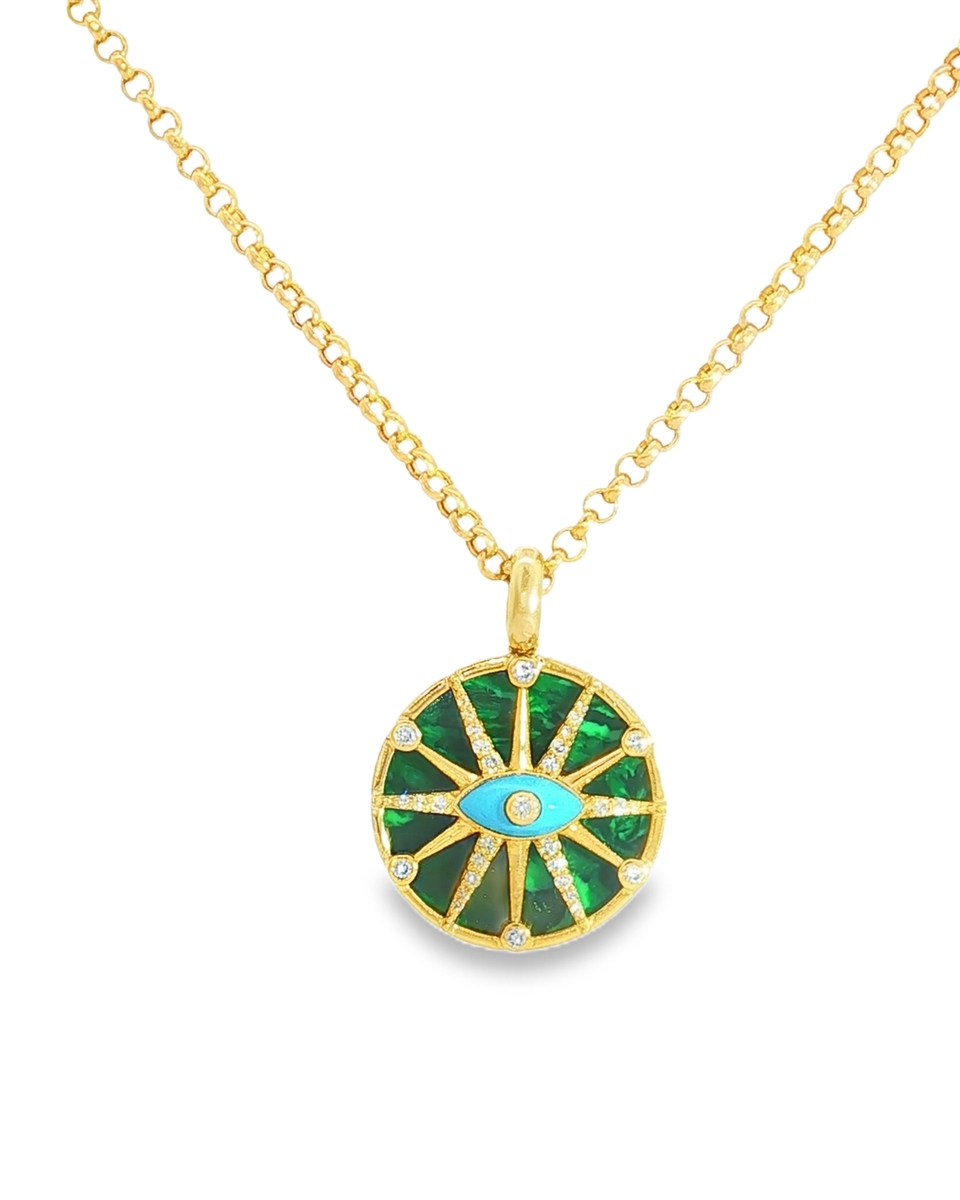 Embrace Mystical Allure With This Yellow Gold Charm Necklace. The Pendant Features A Round Cabochon-Cut Turquoise With A Bluish Green Hue. The Design Is Both Timeless And Eye-Catching, Perfect For Adding A Touch Of Bohemian Chic To Any Ensemble. Its Fine Craftsmanship Ensures This Charm Necklace Remains A Cherished Piece For Years To Come.