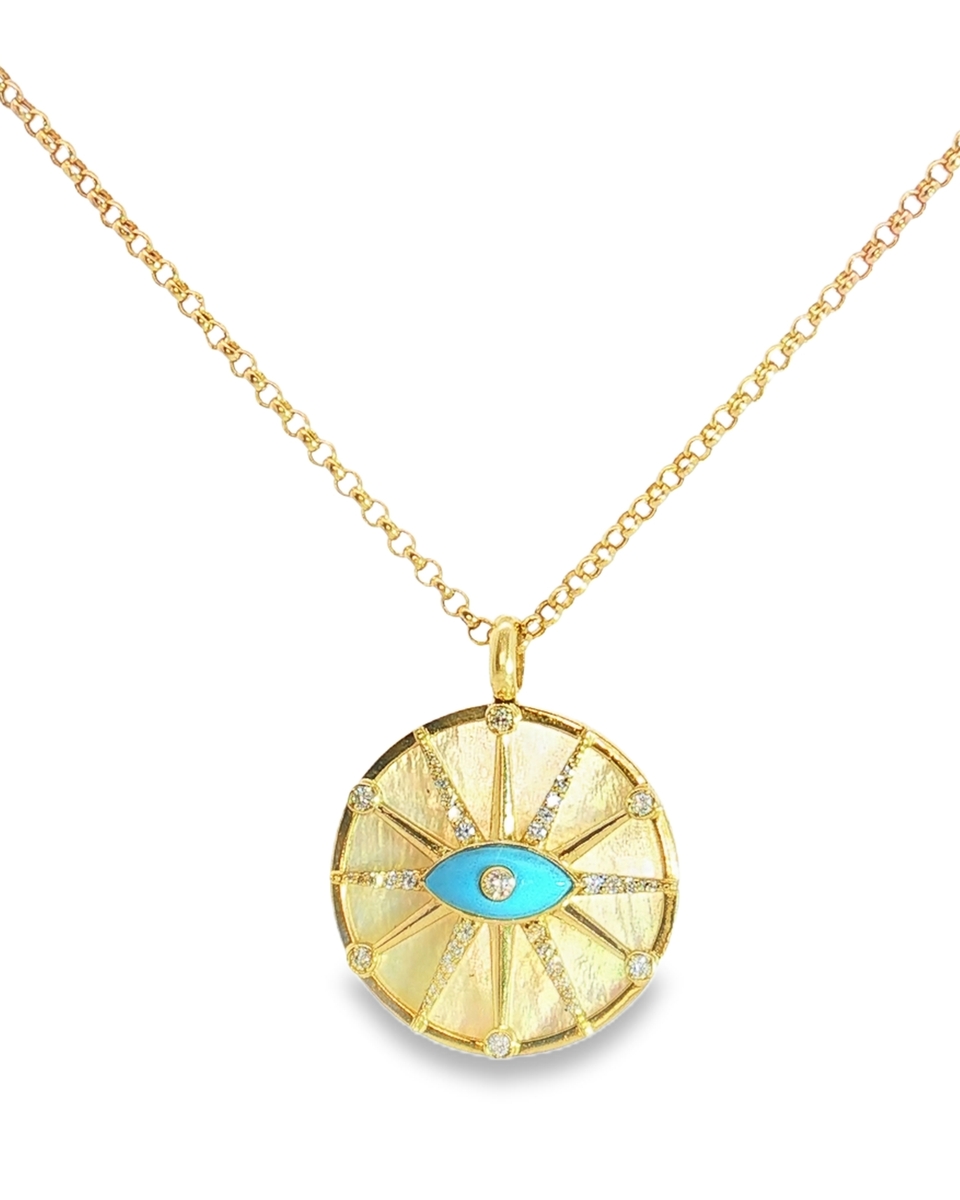 Elevate Your Style With This Exquisite Yellow Gold Charm Necklace, Featuring A Captivating Round Cabochon-Cut Turquoise Gemstone. The Bluish-Green Hue Of The Gemstone Creates A Vibrant Focal Point, Perfectly Complemented By The Warm Tone Of The Gold. A Stunning Piece To Add A Touch Of Elegance To Any Ensemble.