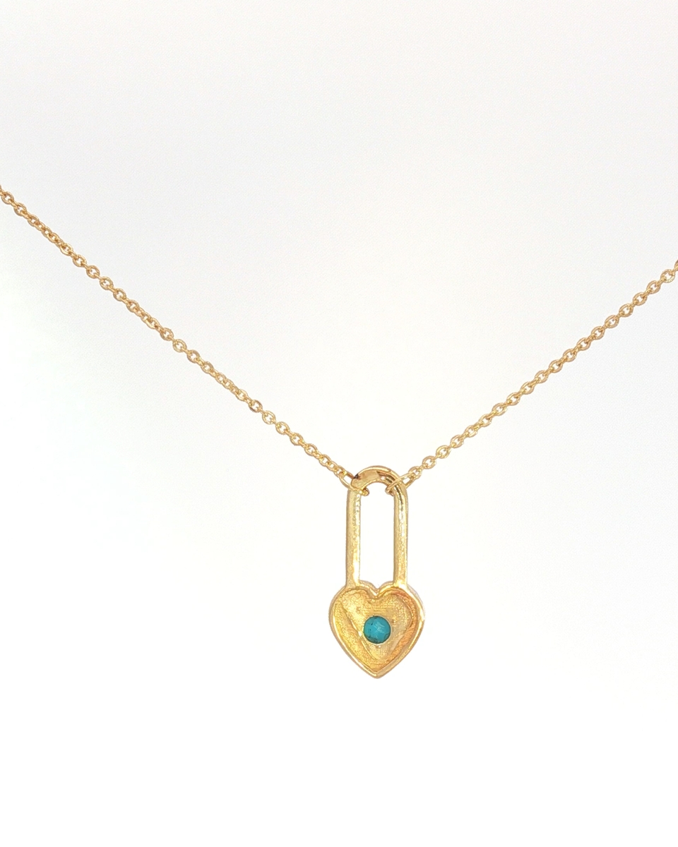 Elevate Your Style With This Charming Necklace Featuring A Heart-Shaped Yellow Gold Pendant. At Its Center Lies A Captivating Round Cabochon Turquoise, Displaying A Mesmerizing Bluish Green Hue. This Delightful Charm Necklace Is Perfect For Adding A Touch Of Elegance To Any Ensemble.
