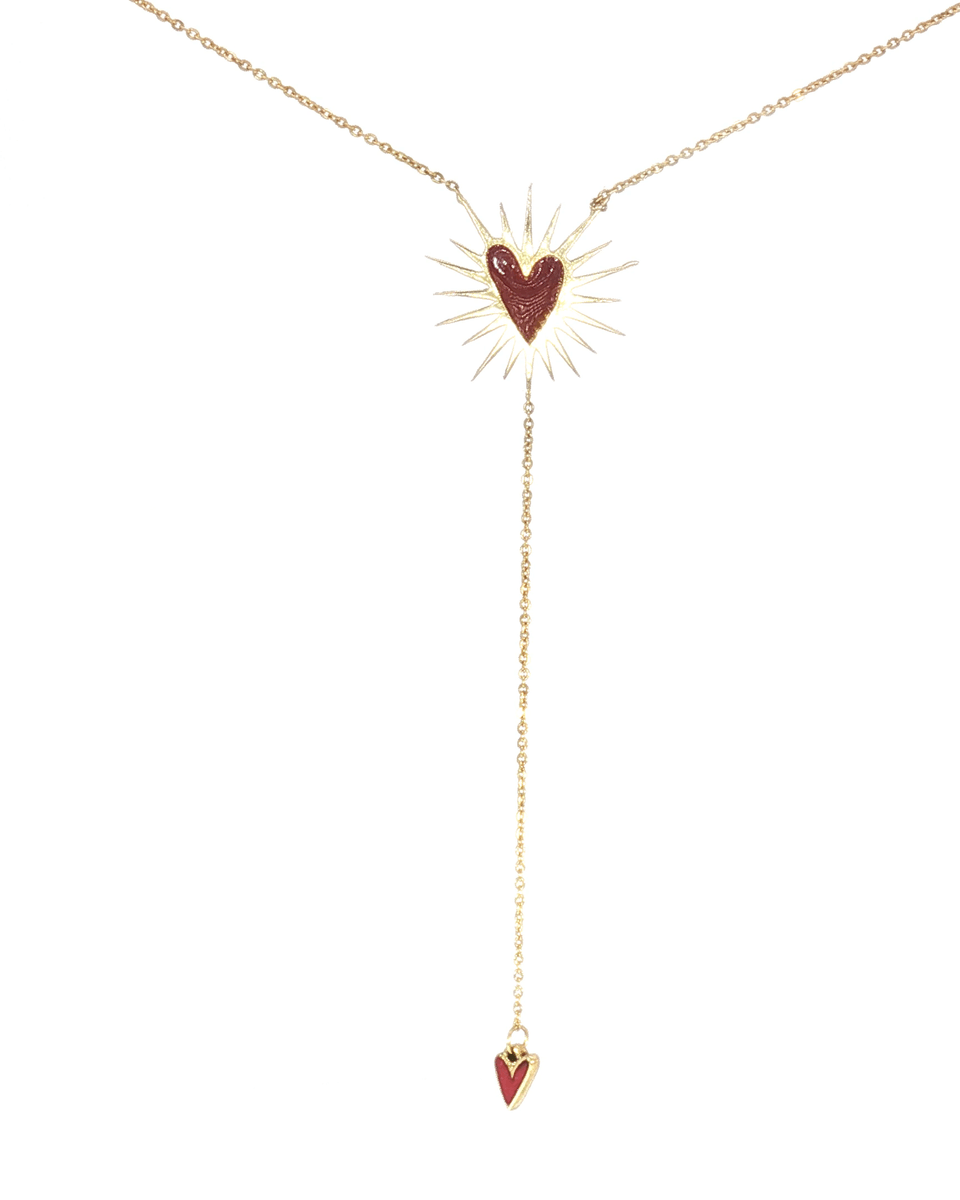 Elevate your style with this radiant yellow gold chain necklace. A vibrant heart motif at the center, surrounded by delicate spikes, adds a touch of modern elegance. The Y-shaped drop with another small heart at the end enhances its sophisticated design, perfect for adding a chic focal point to any ensemble.