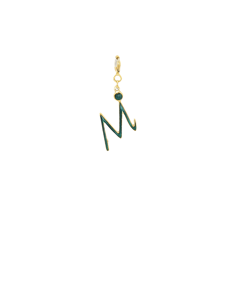 Adorn yourself with this personalized charm pendant, crafted in radiant yellow gold. This initial M pendant features a captivating round emerald cabochon, a verdant gem symbolizing renewal and growth. Its mesmerizing green hue contrasts beautifully with the warm gold, creating an eye-catching design. This is the perfect addition to your fine jewelry collection.