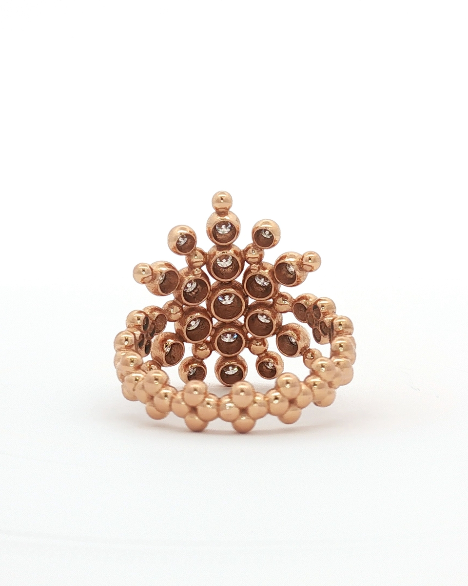 Indulge In The Enchanting Allure Of This Exquisite Cocktail Ring. Crafted From Radiant Rose Gold, This Statement Piece Features A Captivating Arrangement Of Round Brilliant Cut Diamonds. A Stunning Choice To Add A Touch Of Glamour And Sophistication To Any Ensemble, This Ring Embodies Elegance And Impeccable Craftsmanship.