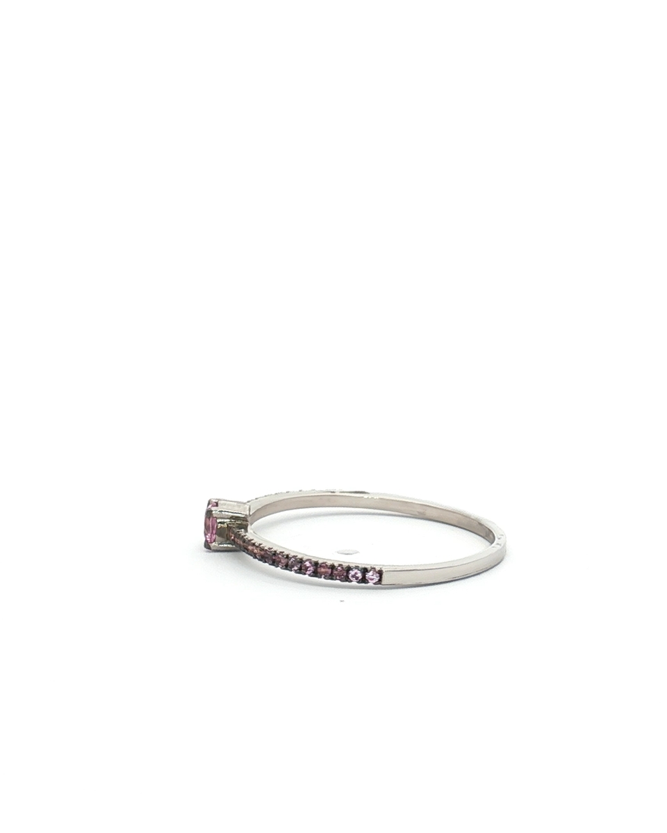 “Capture timeless elegance with this band ring, crafted in lustrous white gold. Featuring a round cabochon rose quartz gemstone, its reddish purple hue offers a touch of romance and sophistication. The ring showcases a minimalist design, perfect for everyday wear or stacking with other favorites.”