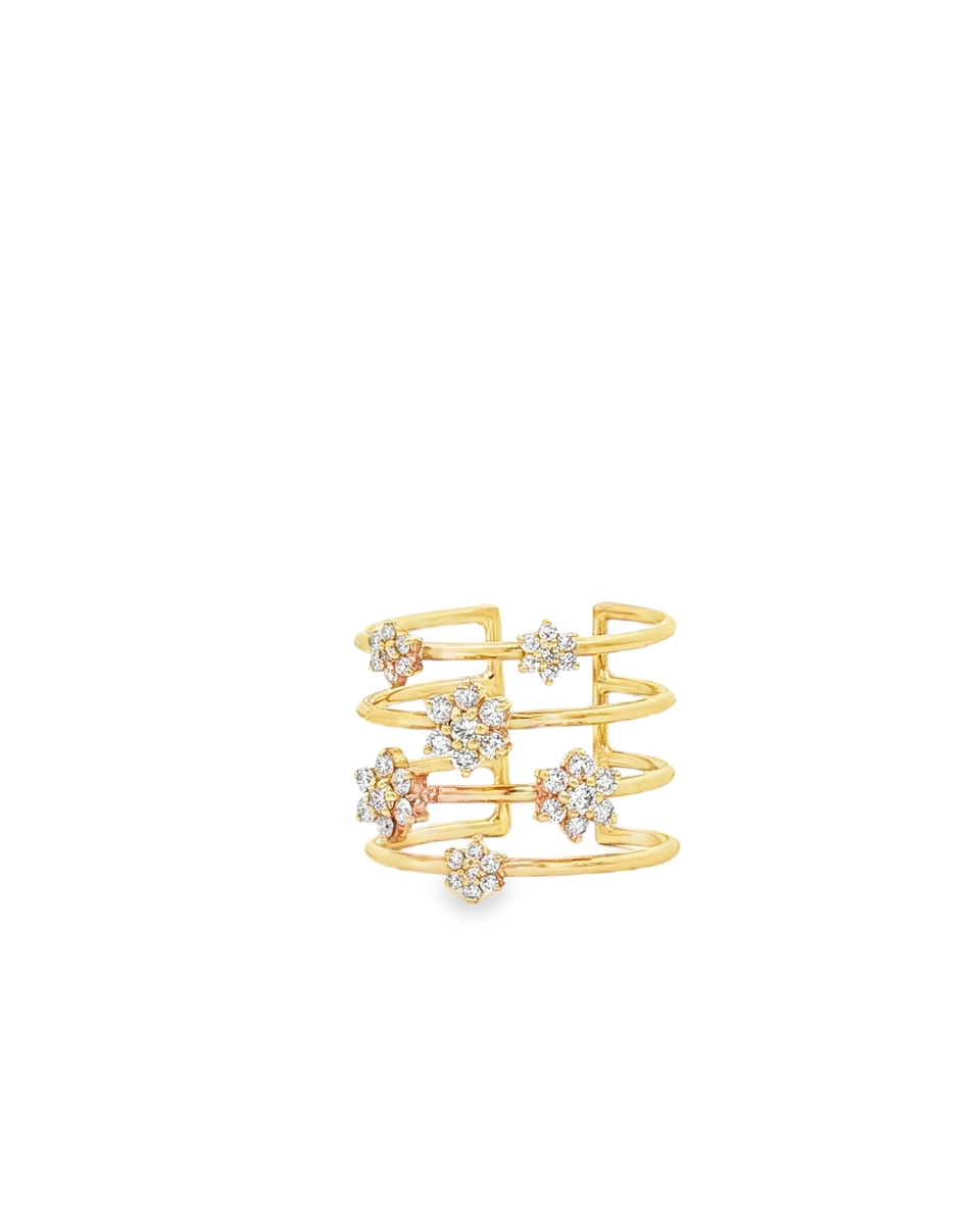 Elevate Your Style With This Exquisite Multistone Ring, Crafted In Radiant Yellow Gold. The Ring Features A Series Of Delicate, Round Brilliant Cut Diamonds, Set In A Captivating Floral Arrangement. This Unique Design Offers A Modern Twist On A Classic Aesthetic, Perfect For Adding A Touch Of Sparkle To Any Ensemble.
