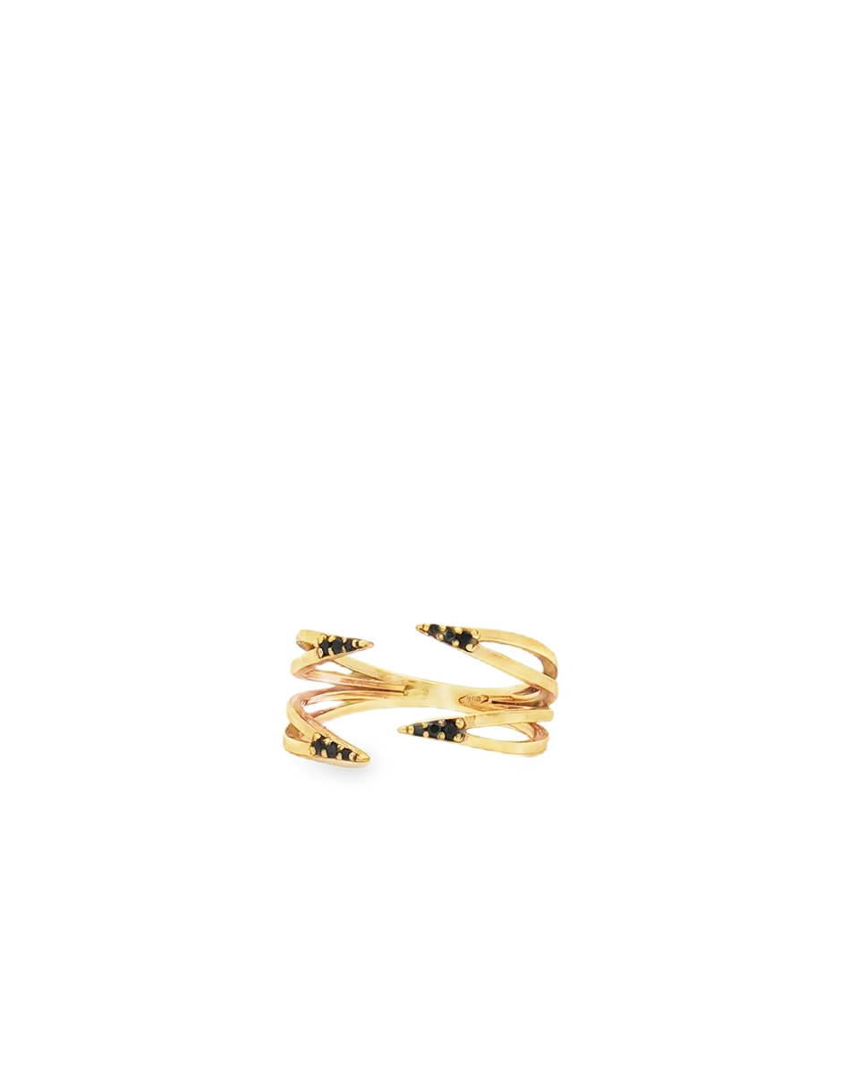 Elevate Your Style With This Striking Multistone Ring Featuring Captivating Round Black Diamond Stones Set In Warm Yellow Gold. The Distinctive Design And Contrasting Materials Create A Bold And Fashionable Look. A Perfect Statement Piece For The Modern Jewelry Enthusiast. The Shank Of The Ring Has Word Markings.