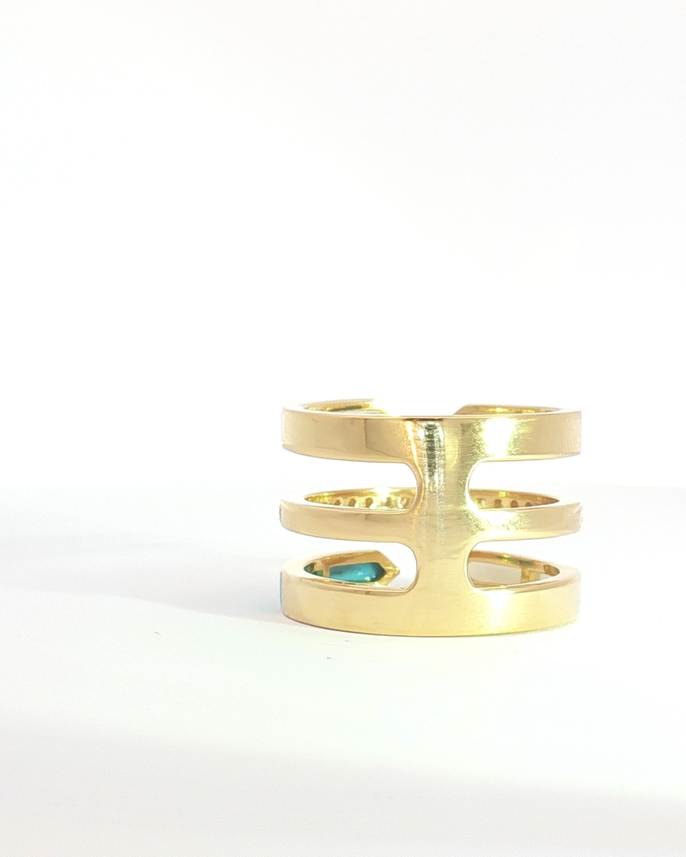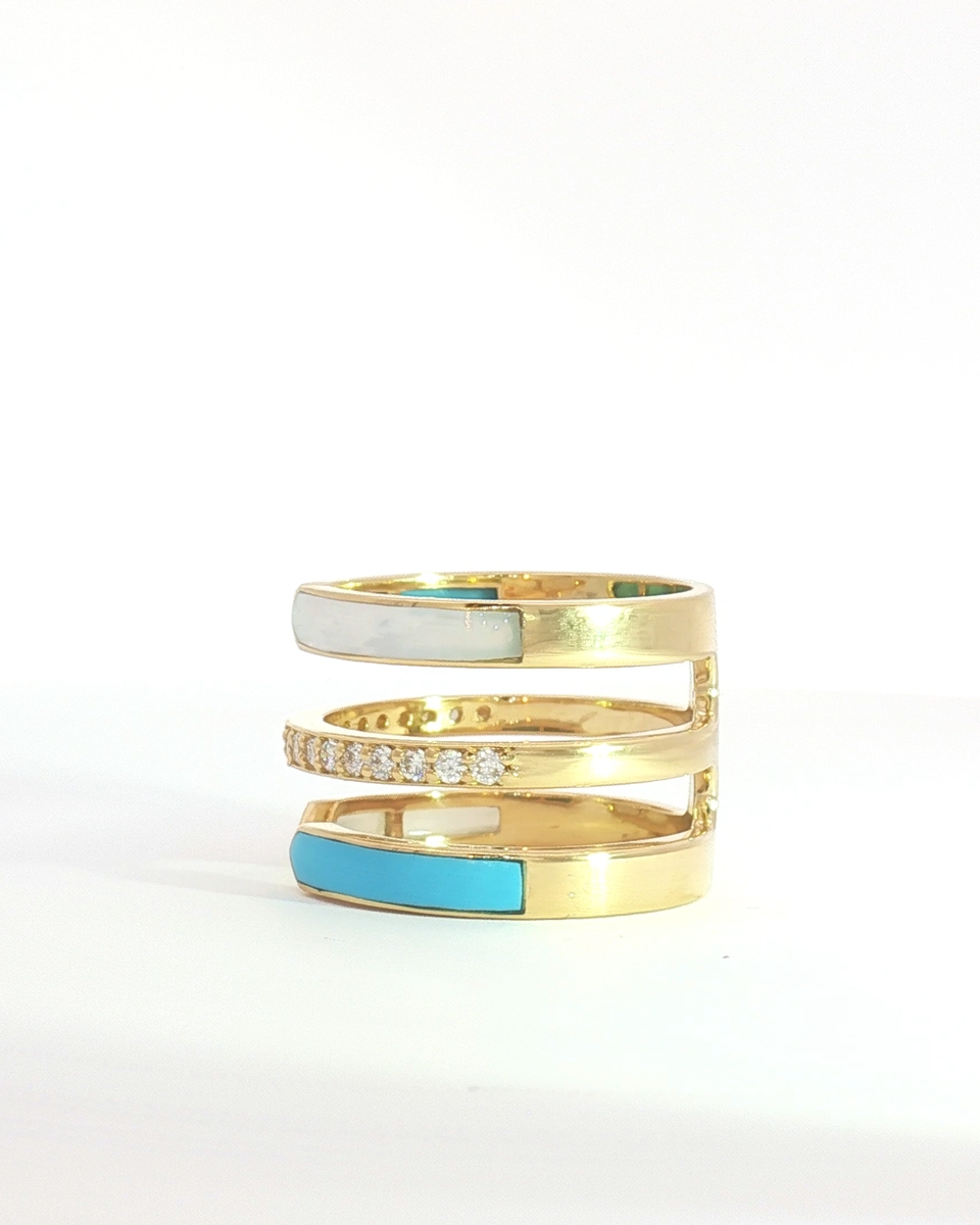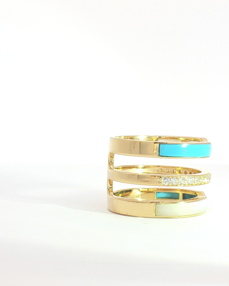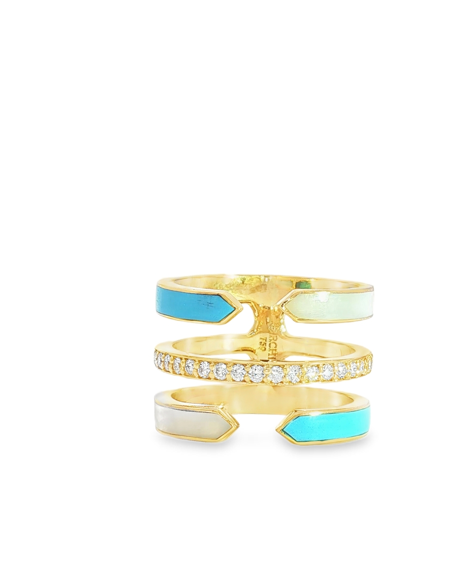 Elevate Your Style With This Chic Stackable Ring Featuring A Radiant Yellow Gold Band. The Central Ring Showcases Meticulously Set Round Cut Diamonds With Brilliant Cutting Style, Exuding A Captivating Sparkle. The Gold Band Is Complemented By Enameled Accents, Adding A Playful Touch Of Color, Making This Ring A Versatile And Elegant Addition To Any Jewelry Collection.