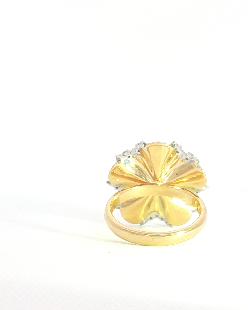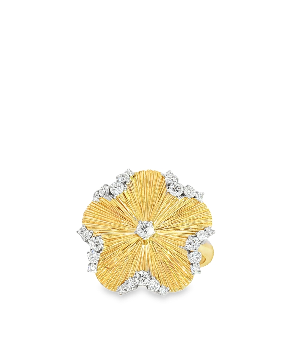 Make A Statement With This Striking Cocktail Ring. Expertly Crafted In Yellow Gold, It Features A Flower Design Adorned With A Round Brilliant-Cut Diamond, Showcasing Exceptional Sparkle And Radiance. A Stunning Piece That Adds A Touch Of Glamour And Sophistication To Any Ensemble.