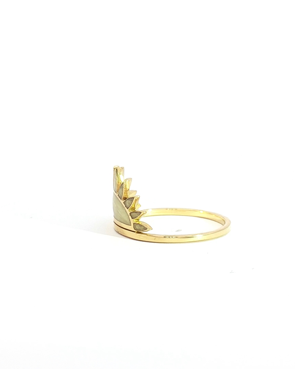 Elevate your style with this exquisite yellow gold sunset ring. Crafted with precision and attention to detail, this ring is a timeless piece that will add a touch of sophistication to any look. Perfect for everyday wear or special occasions, this ring is a must-have for any jewelry lover.