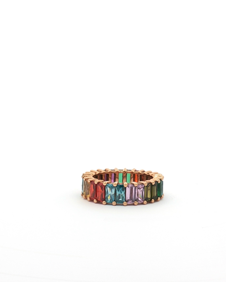 Embrace Timeless Elegance With This Rose Gold Eternity Ring. The Exquisite Piece Features A Sequence Of Emerald Cut Tourmalines In Other Color. Designed With Precision, Each Stone Is Carefully Step Cut, Showcasing Good Polish And Symmetry. The Gemstone Features Vs Clarity And Transparent Nature, Radiating A Vivid Luster, Embodying A Seamless Blend Of Luxury And Sophistication.